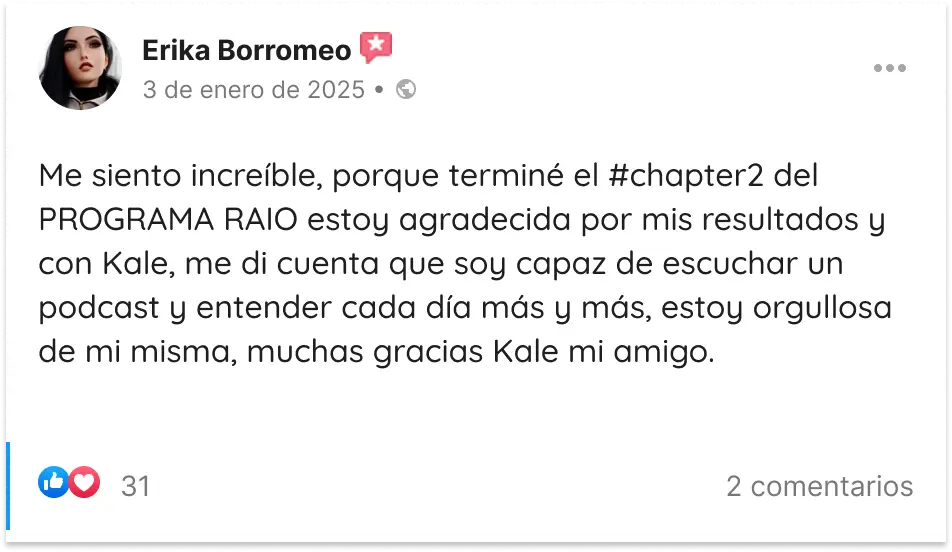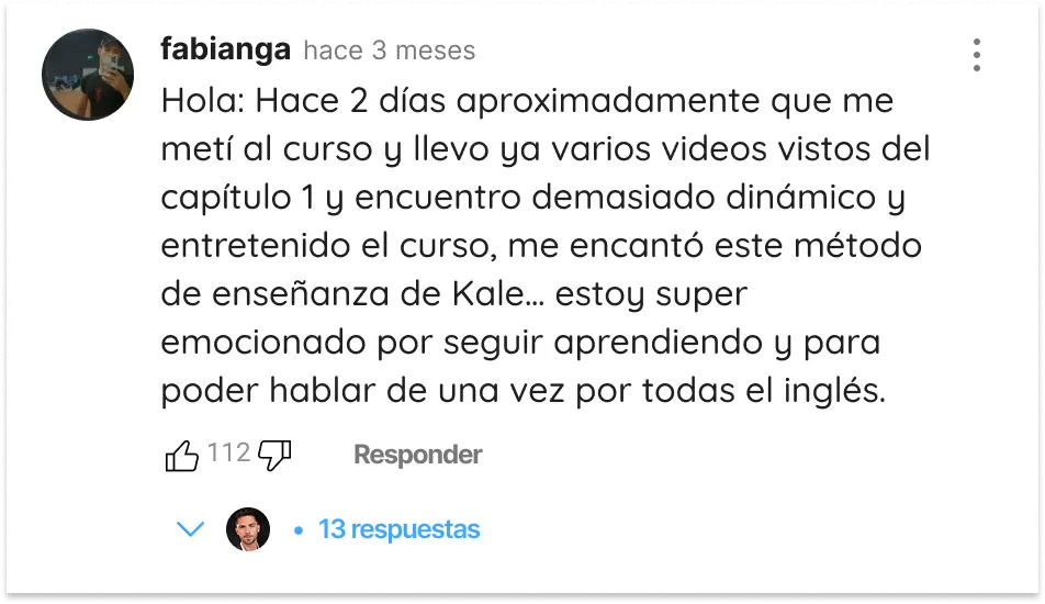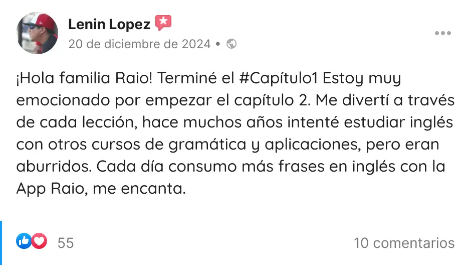 Ahí fue cuando empecé a estudiar español y desarrollar mi propio método para aprender en solo tres meses, el mismo método que enseño en el Programa RAIO (Revolución Aprender Inglés Online) y que hoy en día más de 100.000 personas en más de 100 países utilizan para aprender inglés.