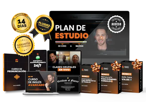 Con esto será CASI IMPOSIBLE saber que tu lengua nativa no es el inglés. En solo 30 días corregirás hasta los errores más sutiles, alcanzarás un nivel de fluidez mucho más refinado y profesional y podrás entender hasta el inglés más avanzado y complejo, ¡SIN IMPORTAR EL ACENTO EN EL QUE TE HABLEN!